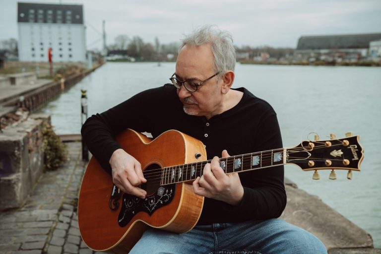 Mit ihm an der Gitarre bringt Liederbuch geballte musikalische Kompetenz auf die Bühne.
